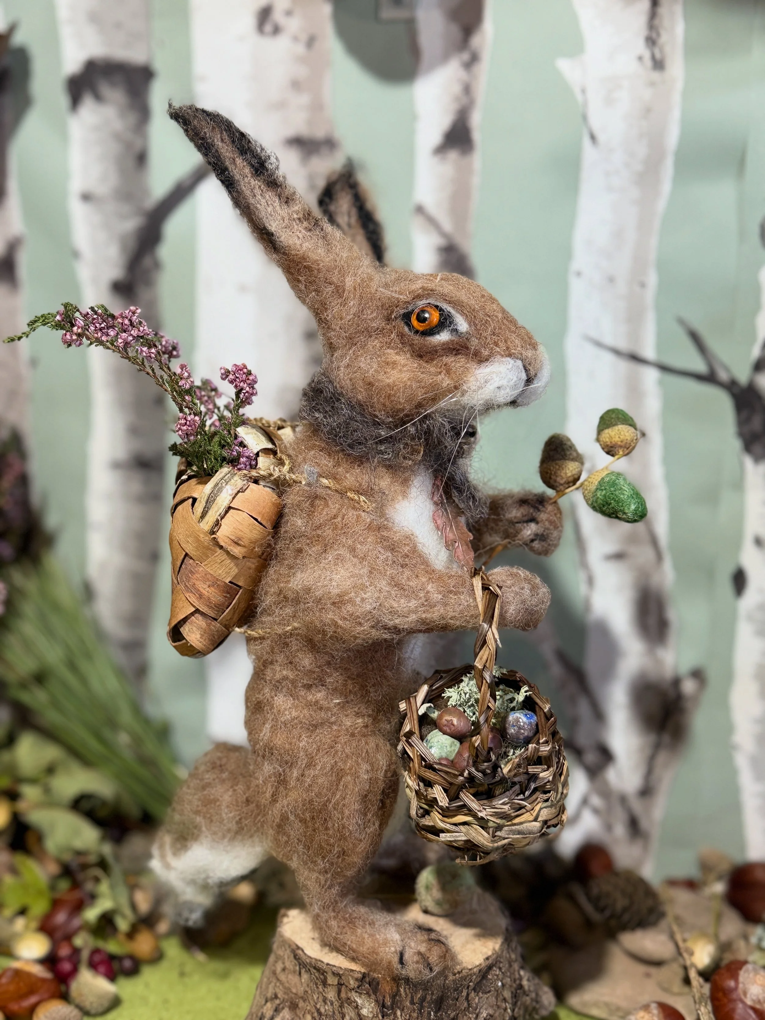 Needle felted animals of charm and character with seasonal accessories. Each animal has a wire armature so you can move and pose them as you wish. They are usually in the range of 4-12cm tall and each collection has a seasonal theme for handmade accessories to accompany them. Usually there are approx 8 collections a year to follow the turn of the seasons. They often sell out quickly when released, but there is also a small range of made to order animals and commission slots available