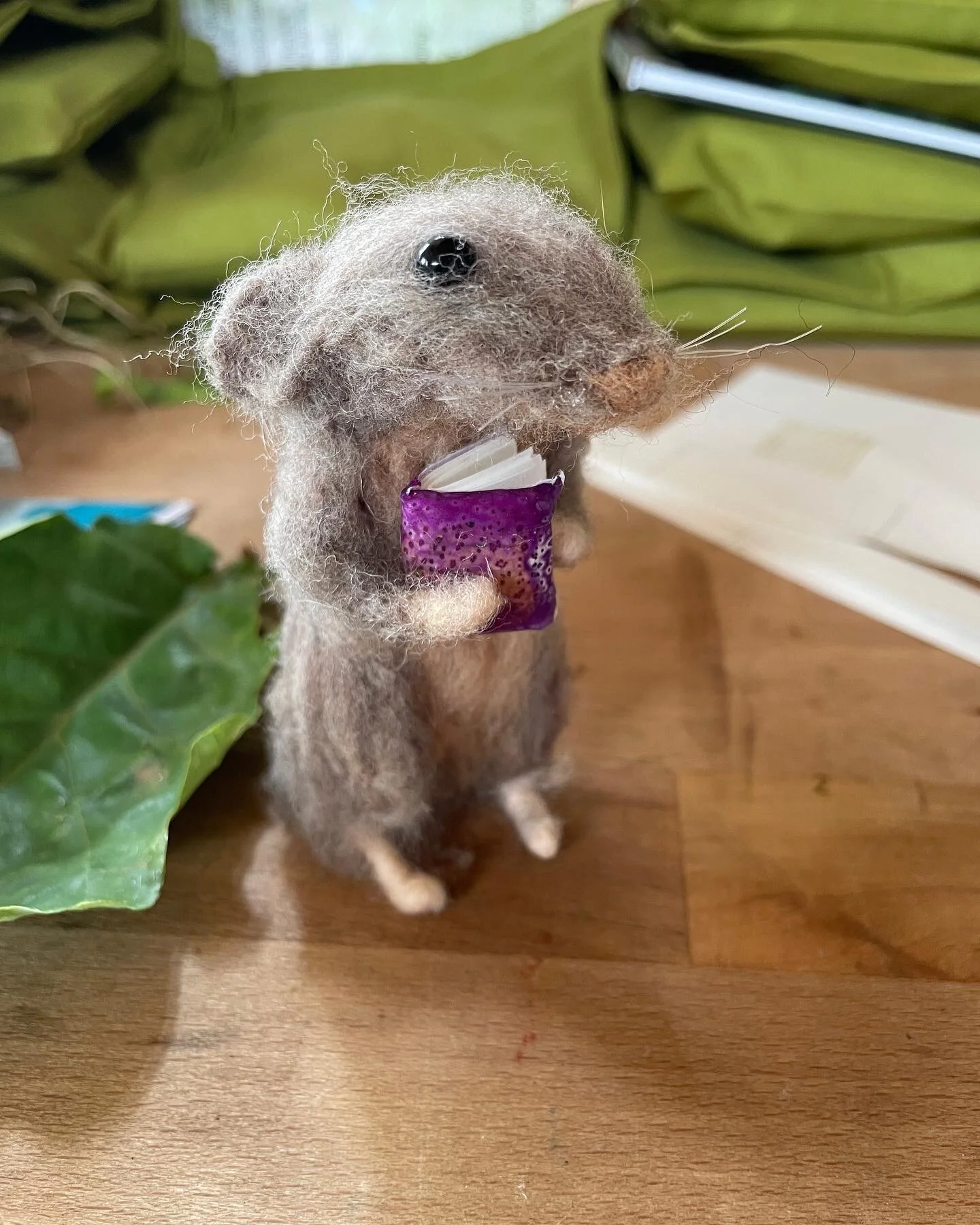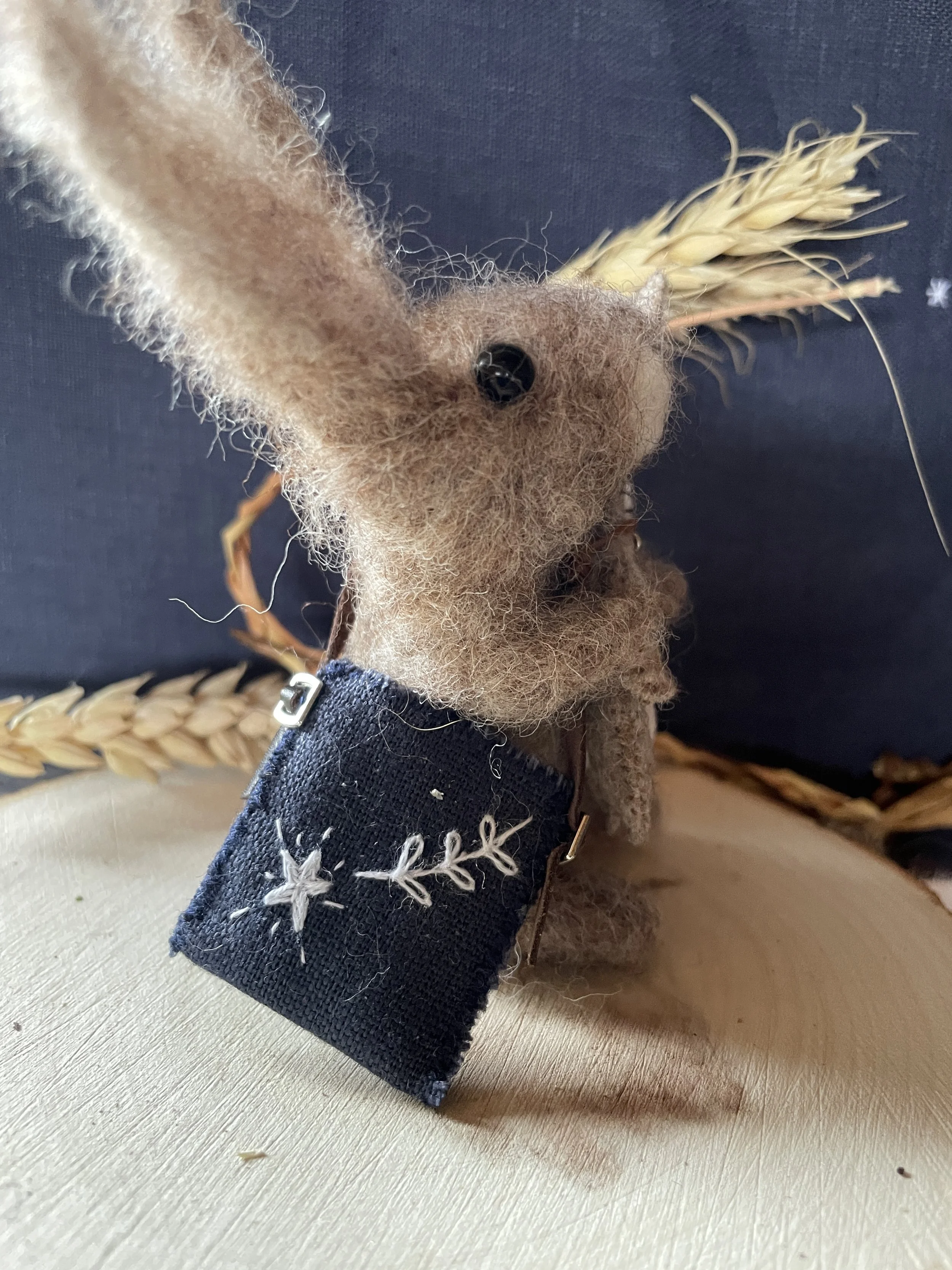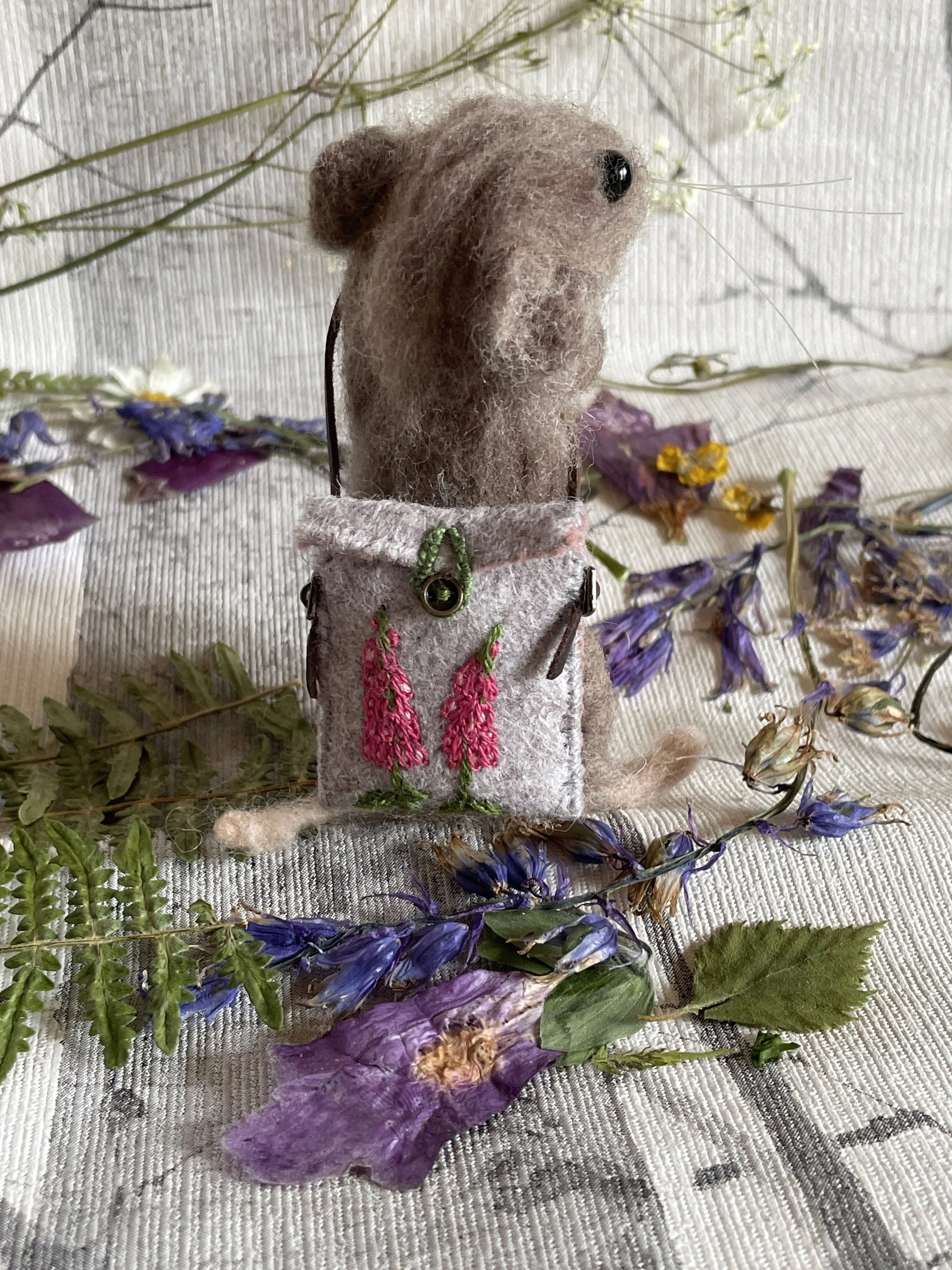Basil the Water Vole was made for the lovely Maggie who I had met at Craft in Focus at Wisley and then came on a needle felting workshop. Here he is in his new allotment showing his new tribe his name.