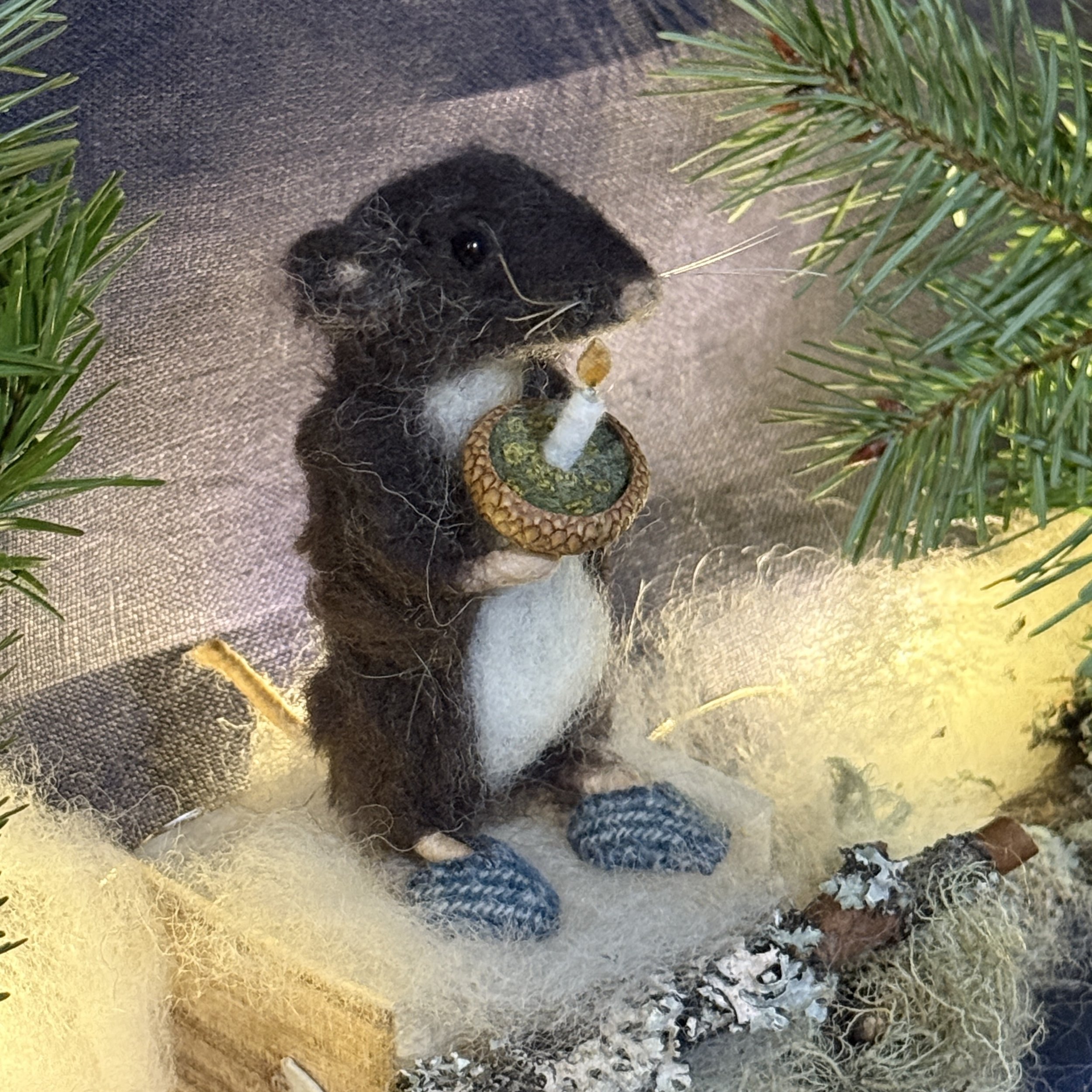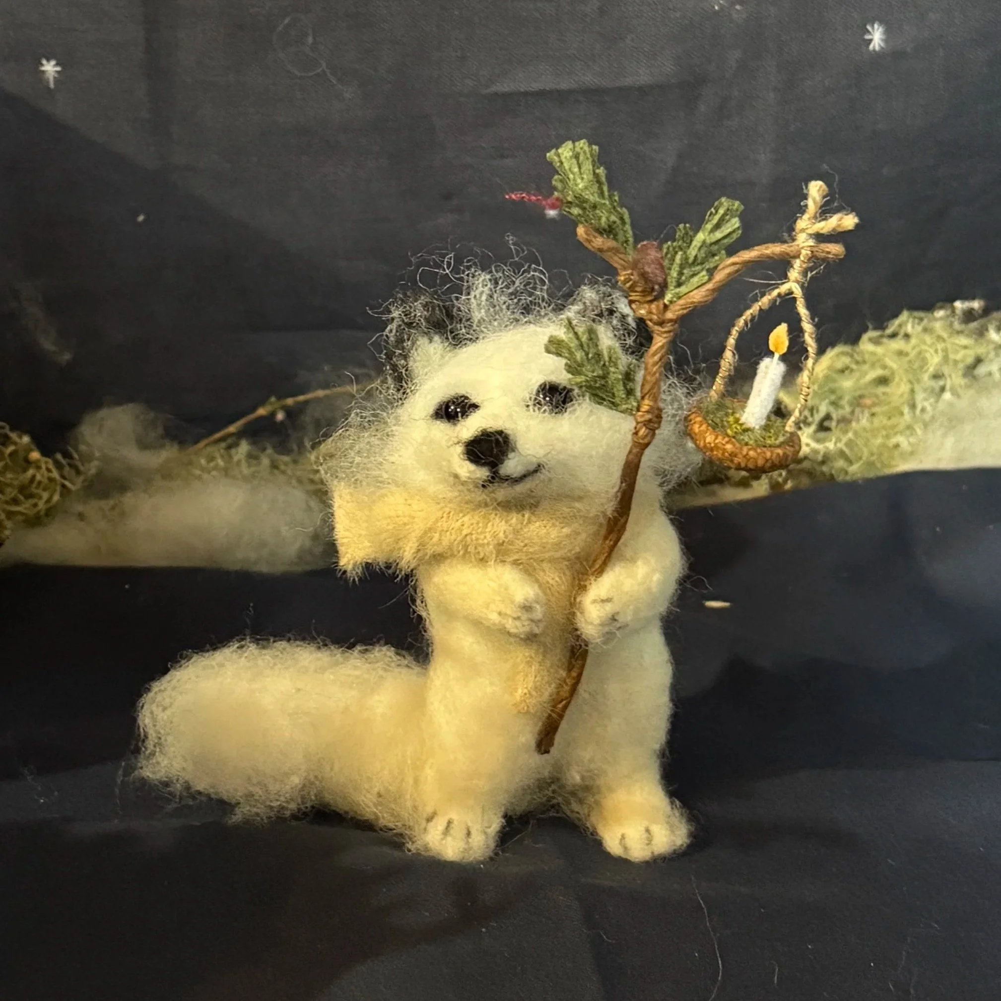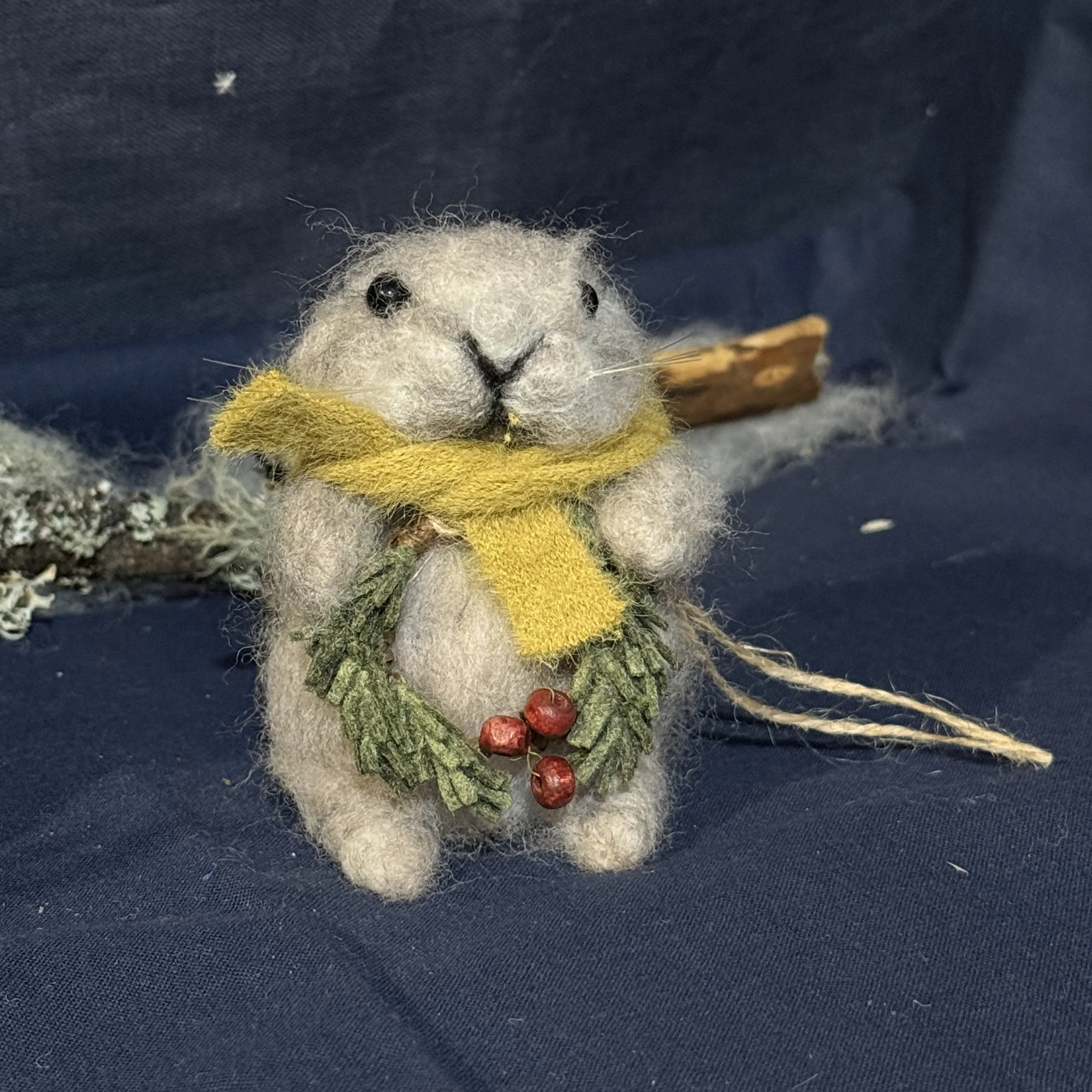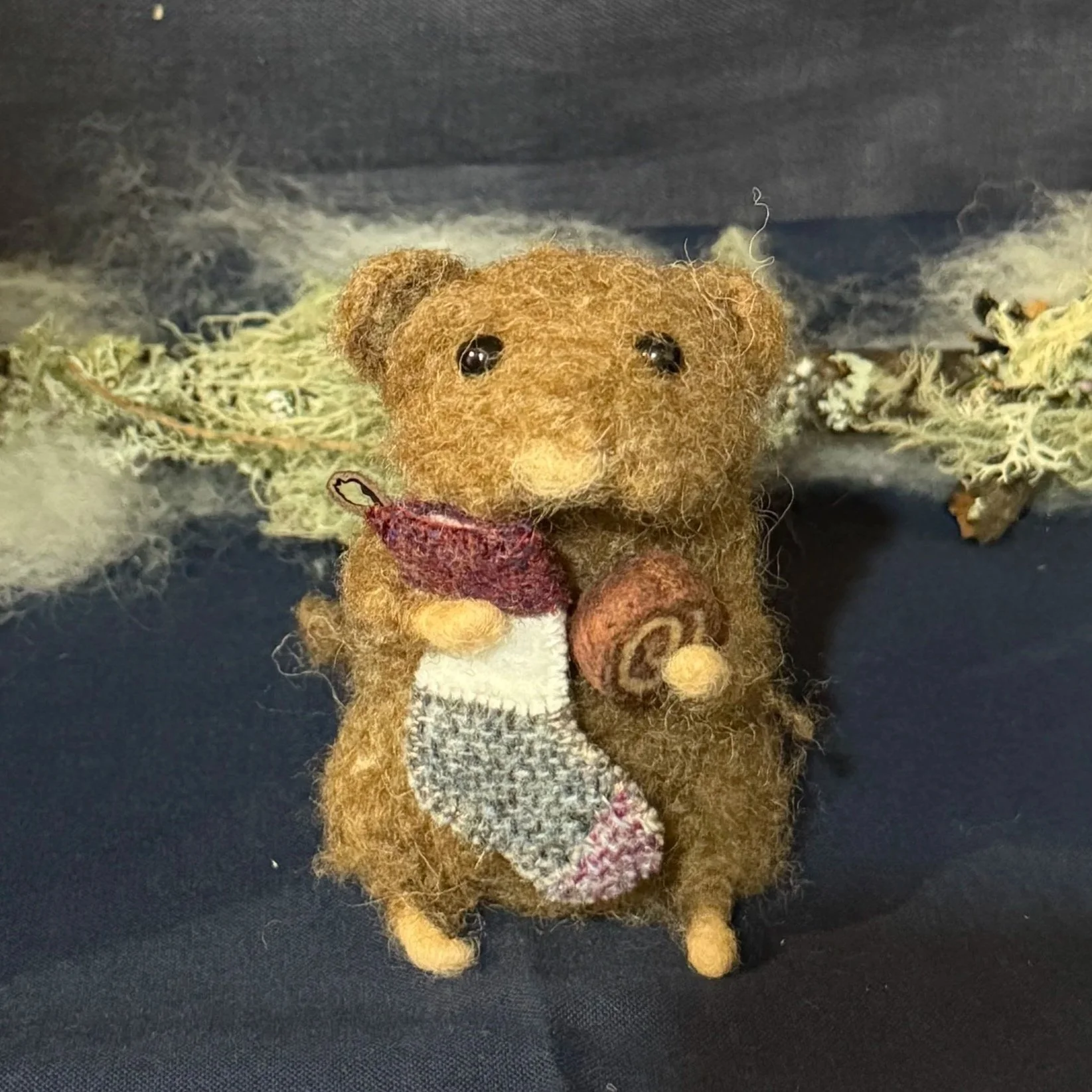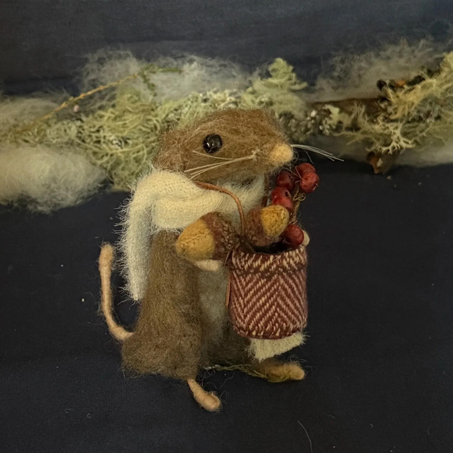 I move sold items to the past work and reviews page where you can view them to get an idea for commissions etc. . Embroidered felt/linen accessories made by the amazing magic sewing hands of Kathy Anderson Everything else is handmade by myself Karin Celestine. Needle felted animals with seasonal accessories. Cute whimsical and joyful, wild woodland creatures, a gift to bring a smile.